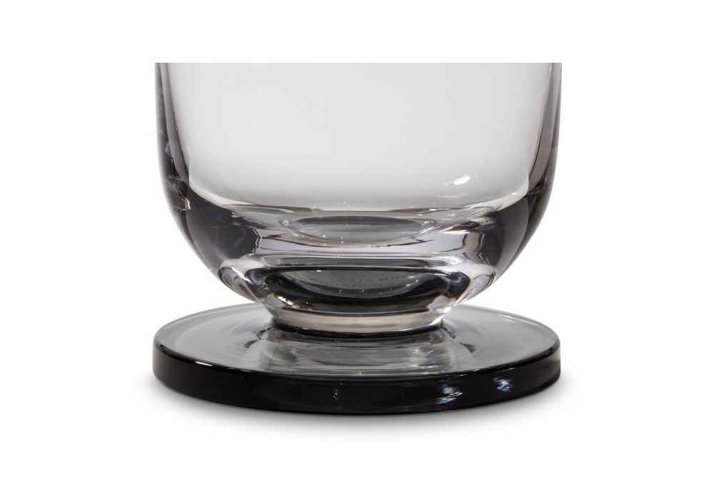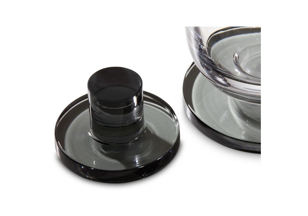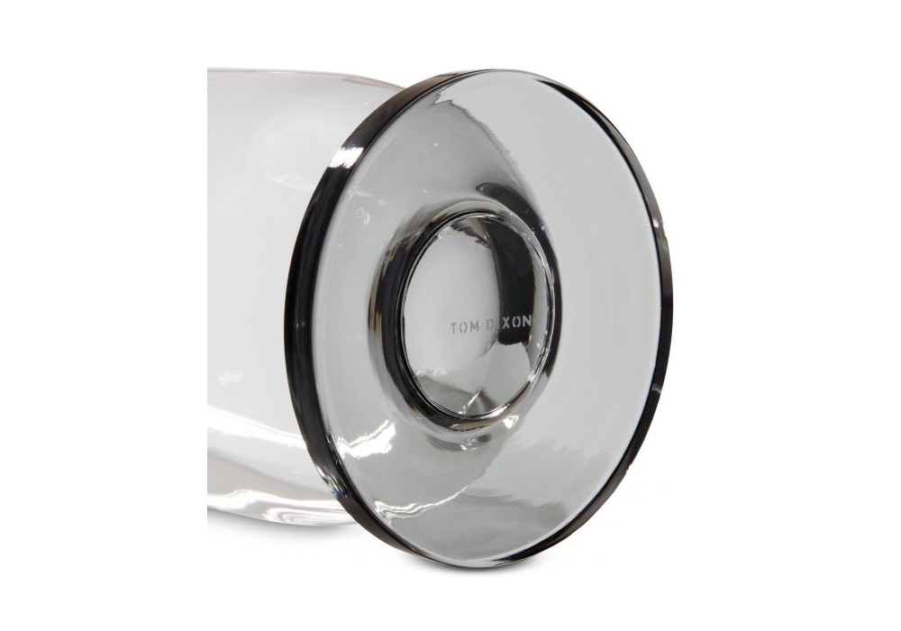 Puck diseñado por Tom Dixon es un decantador de vidrio soplado con un toque de color humo.