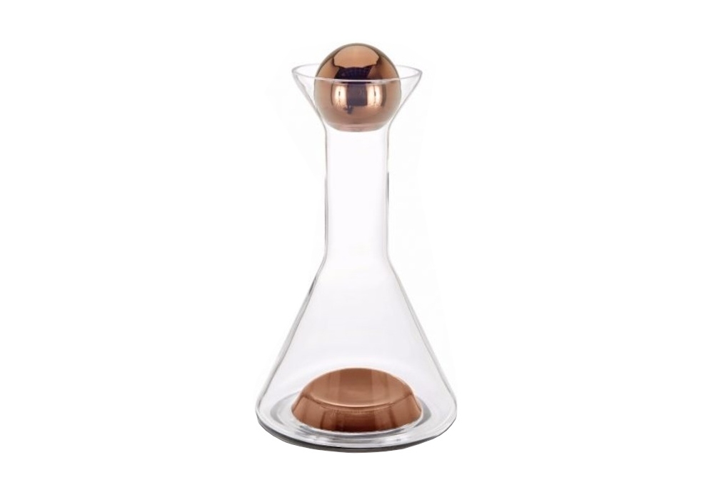 Tank diseñado por Tom Dixon es un decantador fabricado en vidrio soplado transparente, detalles disponibles en acabados cobre o negro.
