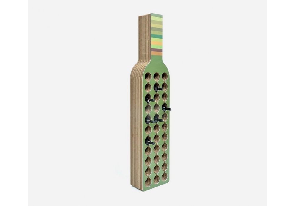 Bodega designed by Kubedesign is a bottle-shaped wine rack with 33 storage spaces and a shock-proof finish. Available in 3 colours with a striped design.