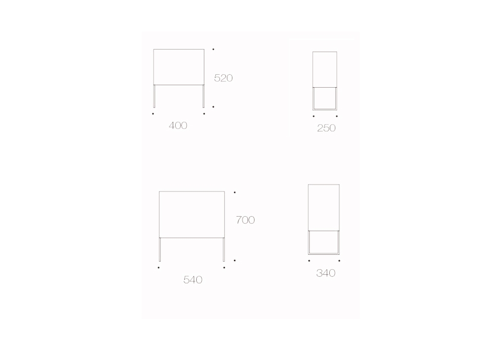 | Dimensiones | 40 x 25 x H 52 cm; 54 x 34 x H 70 cm. |