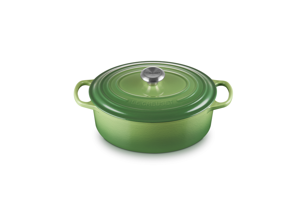 Cocotte Ovale Evolution 29 diseñada por Le Creuset es una cazuela ovalada de hierro fundido disponible en diferentes colores. Acabado interior blanco a excepción de la cazuela negra que tiene interior negro.