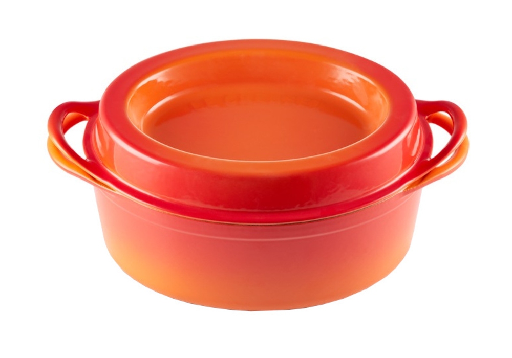 Doufeu Ovale 32 diseñada por Le Creuset es una cazuela ovalada de hierro fundido disponible en diferentes colores.
