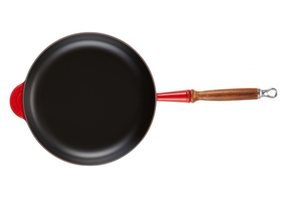 Padella con Manico Legno 26 diseñada por Le Creuset es una sartén de hierro fundido disponible en diferentes colores.