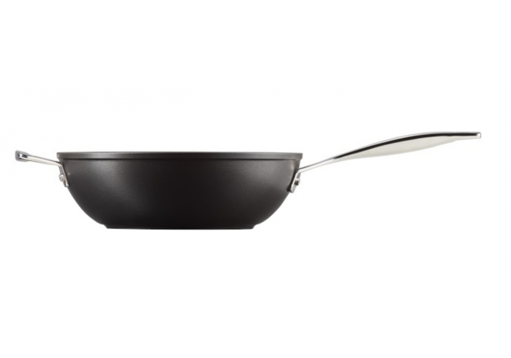 Padella Wok con Manico Lungo e Maniglia 30 diseñada por Le Creuset es una sartén de aluminio antiadherente con mango y mango largos.