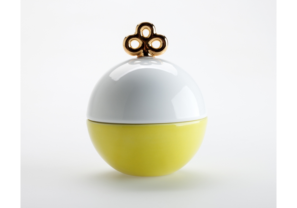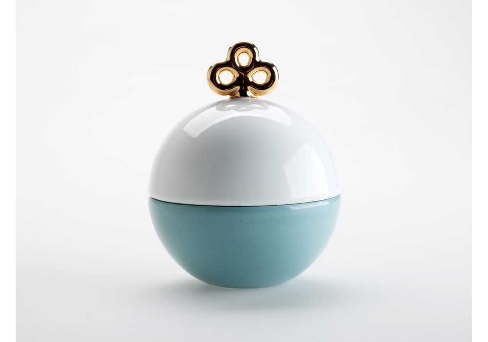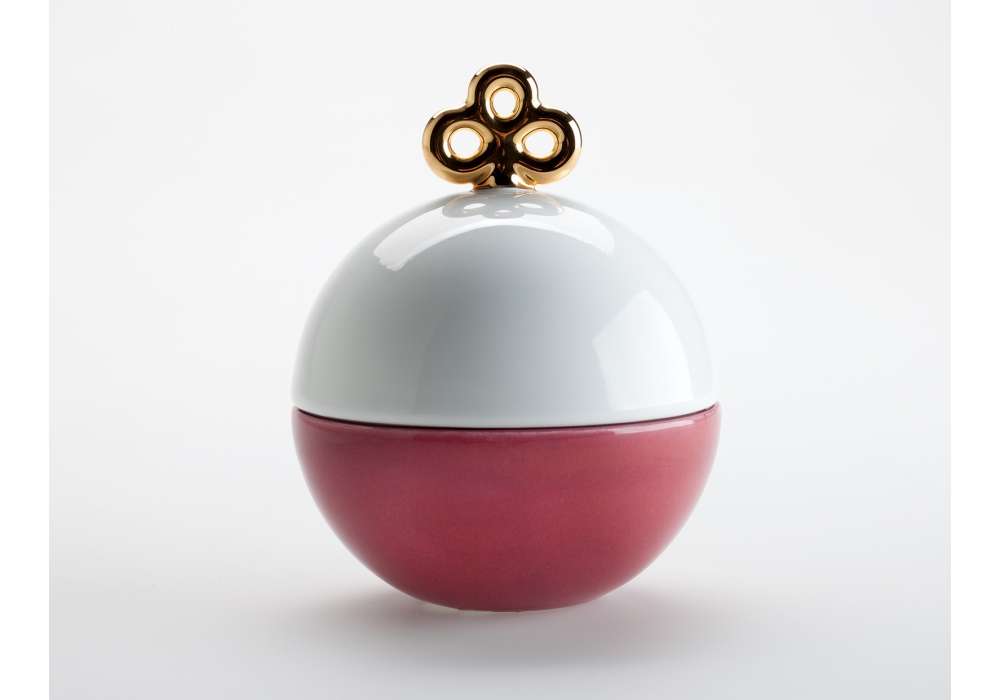 Magic ball box diseñada por Nika Zupanc para Bosa es una caja esférica de cerámica, enriquecida por una clave simbólica en oro brillante en la parte superior de la tapa. Una forma de recoger objetos pequeños, recuerdos o pensamientos que nos recuerdan momentos especiales en nuestra vida. Disponible en 3 acabados.