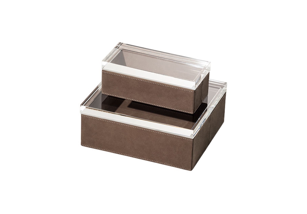 Leather Case diseñada por Poltrona Frau Style & Design C. para Poltrona Frau es una caja con estructura en fibra de madera y cubierta en metacrilato. Revestimiento interno y externo en cuero Pelle Frau. Disponible en dos medidas.
