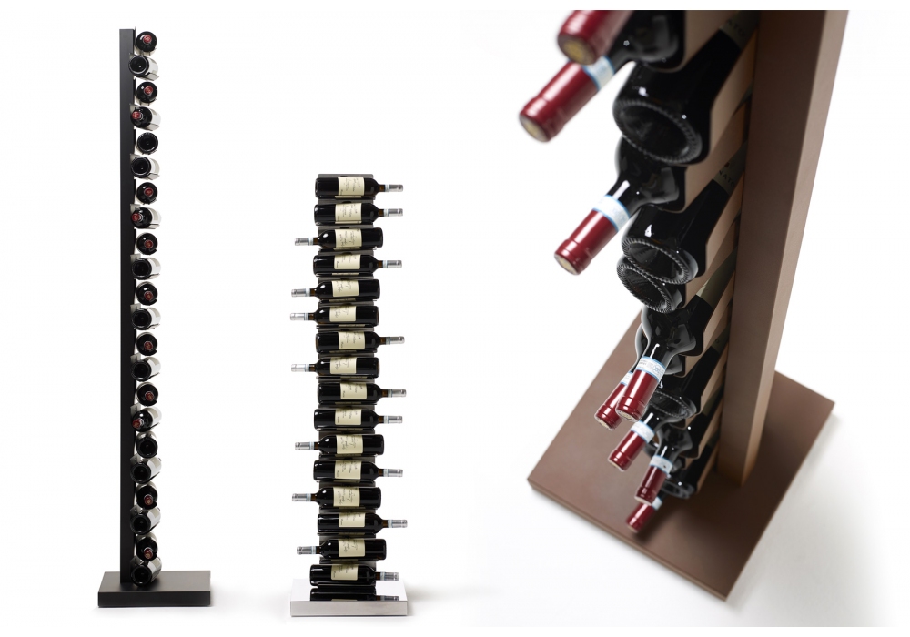 Ptolomeo Vino diseñado por Bruno Rainaldi para Opinion Ciatti es un botellero vertical autoportante en acero con base grabada con la firma del diseñador. Pies ajustables. Los estantes están equipados con prácticos elásticos antideslizantes lavables. Disponible en diferentes acabados y dimensiones.