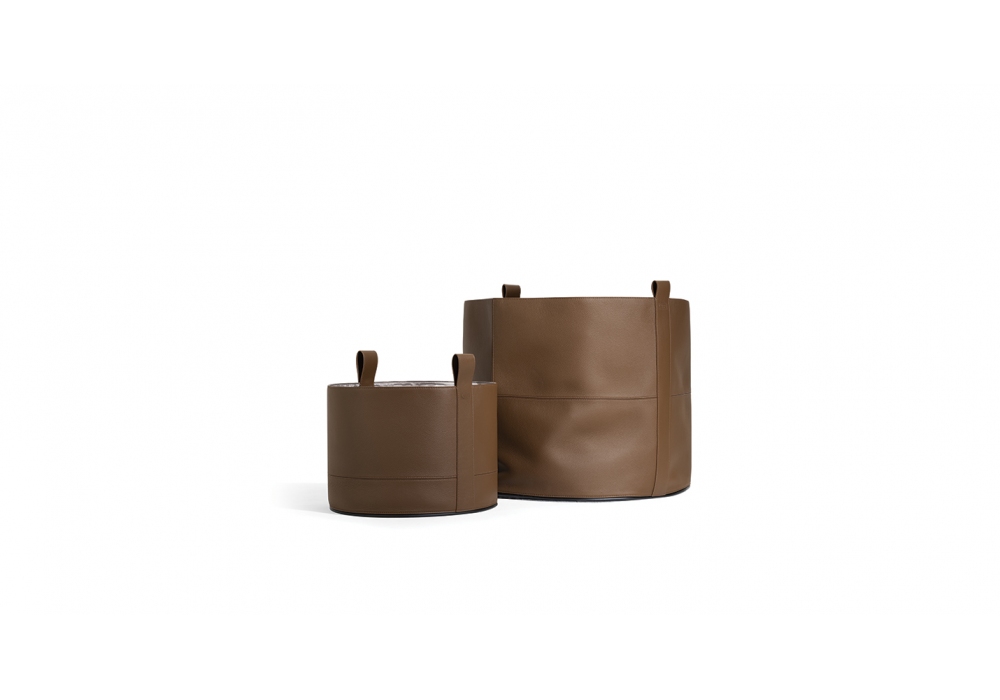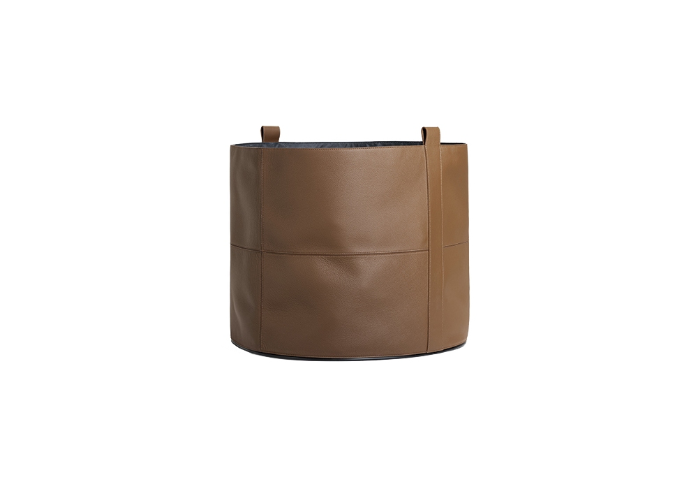 Leather Basket diseñada por Simona Cremascoli es una cesta que se presenta en dos tamaños, realizada en suave piel Pelle Frau®, creada y cosida a mano por expertos artesanos.
