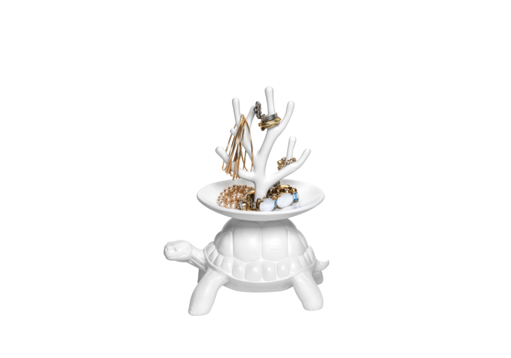 Turtle Carry XS diseñado por Marcantonio para Qeeboo es una caja de joya íntegramente realizado en resina blanca.