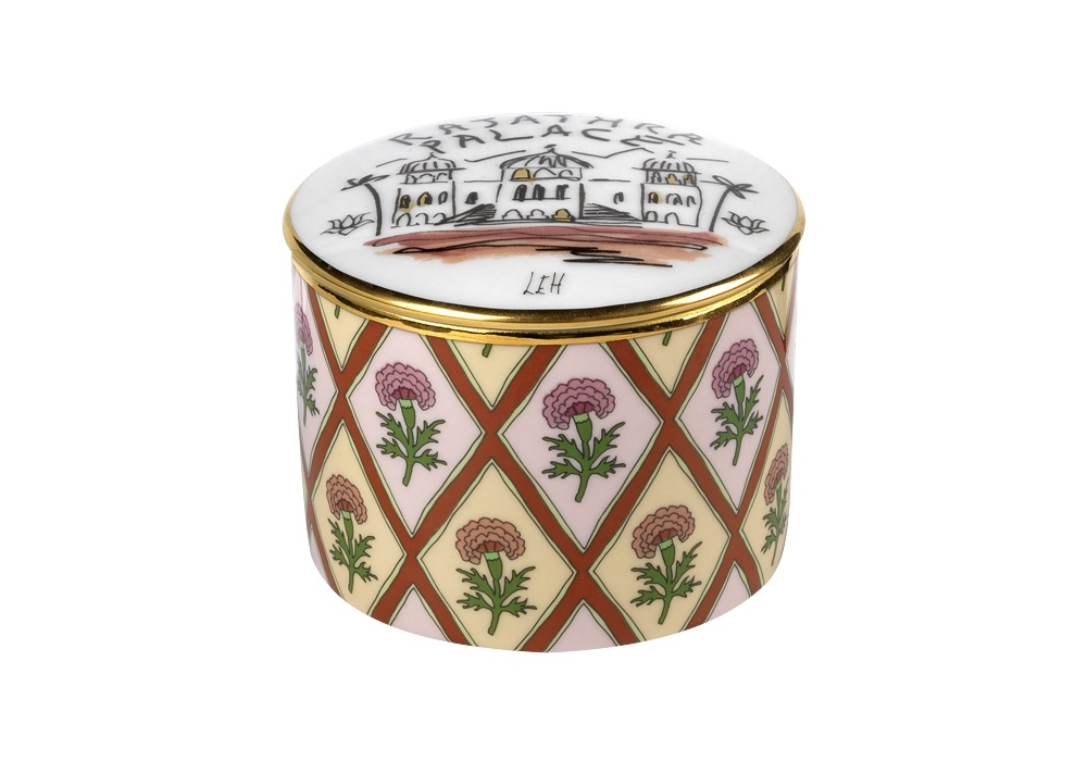 Rajathra Palace diseñada por Luke Edward Hall para Ginori 1735 es una caja de joya decorada con tapa en pura porcelana.