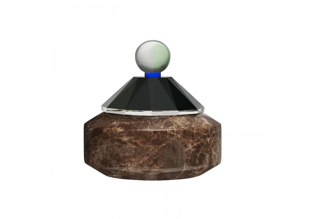 Apple diseñado y producido por Reflections Copenhagen es un joyero estructurado por la combinación de cristal artesanal y mármol emperador.