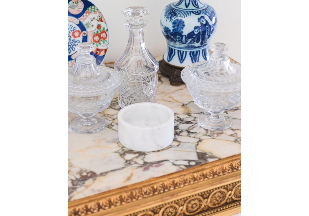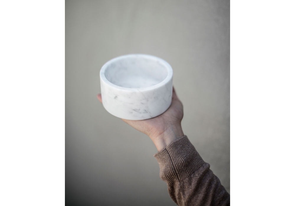 Ti Prendo Io - Contenedor diseñado por MarmoLove es un contenedor cilíndrico bajo hecho de mármol blanco de Carrara 100% pulido.