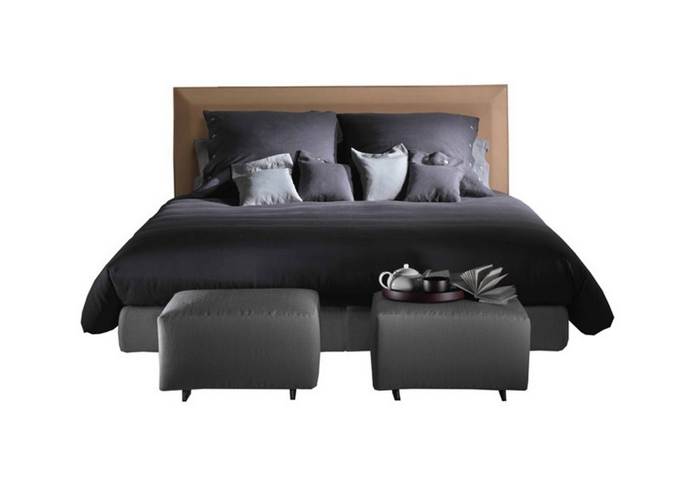 Eden is a bed designed by Antonio Citterio for Flexform. Headboard in leather. Bed base cover available in fabric or leather. Mattress not included.