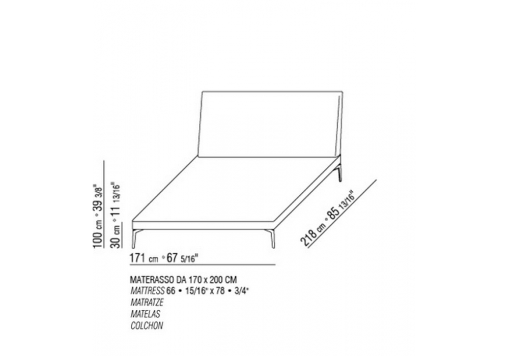 Feel Good is a bed designed by Antonio Citterio for Flexform. Base: metal frame covered in leather. Head: wood with polyurethane padding covered with a protective fabric. Available with fabric or leather, with removable covers. Feet: metal or metal covered with leather. Mattress not included.