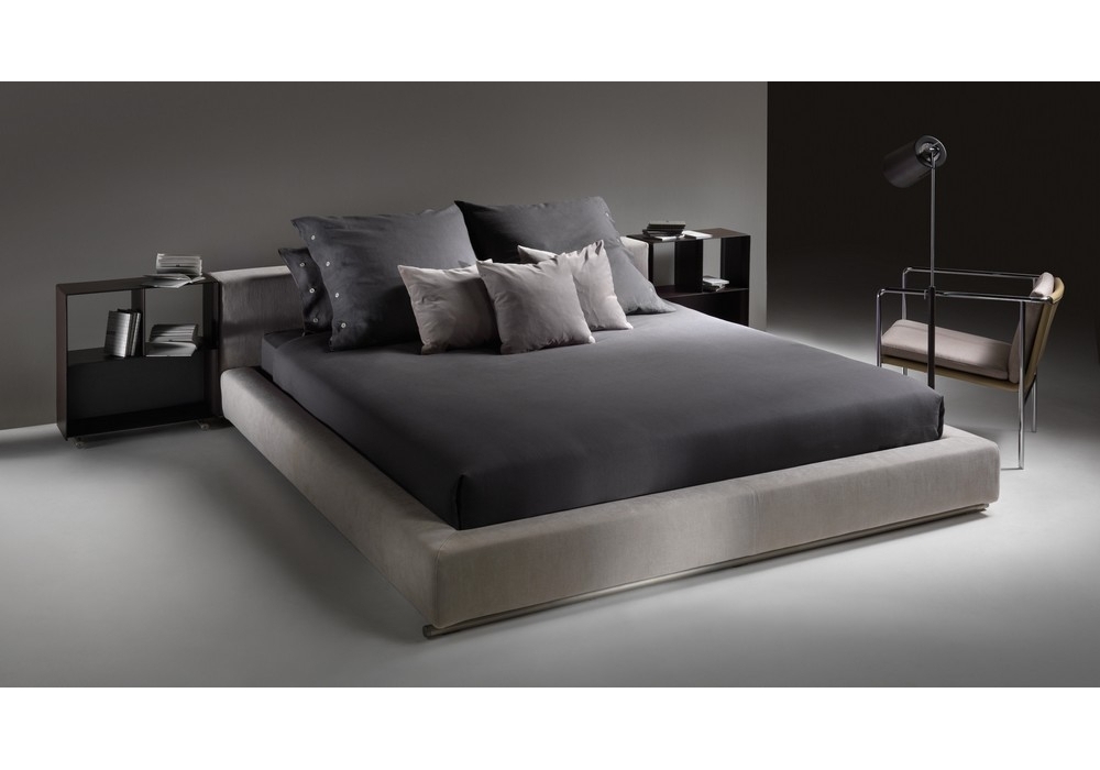 Groundpiece is a bed designed by Antonio Citterio for Flexform. Base with platform fitted with wooden slats. Headboard: in wood with polyurethane padding covered with a protective fabric lining. Feet: in metal treated with epoxy lacquer. Removable fabric or leather covers. Mattress not included.