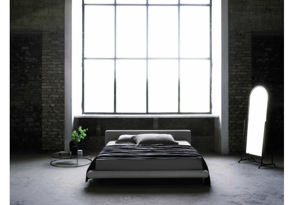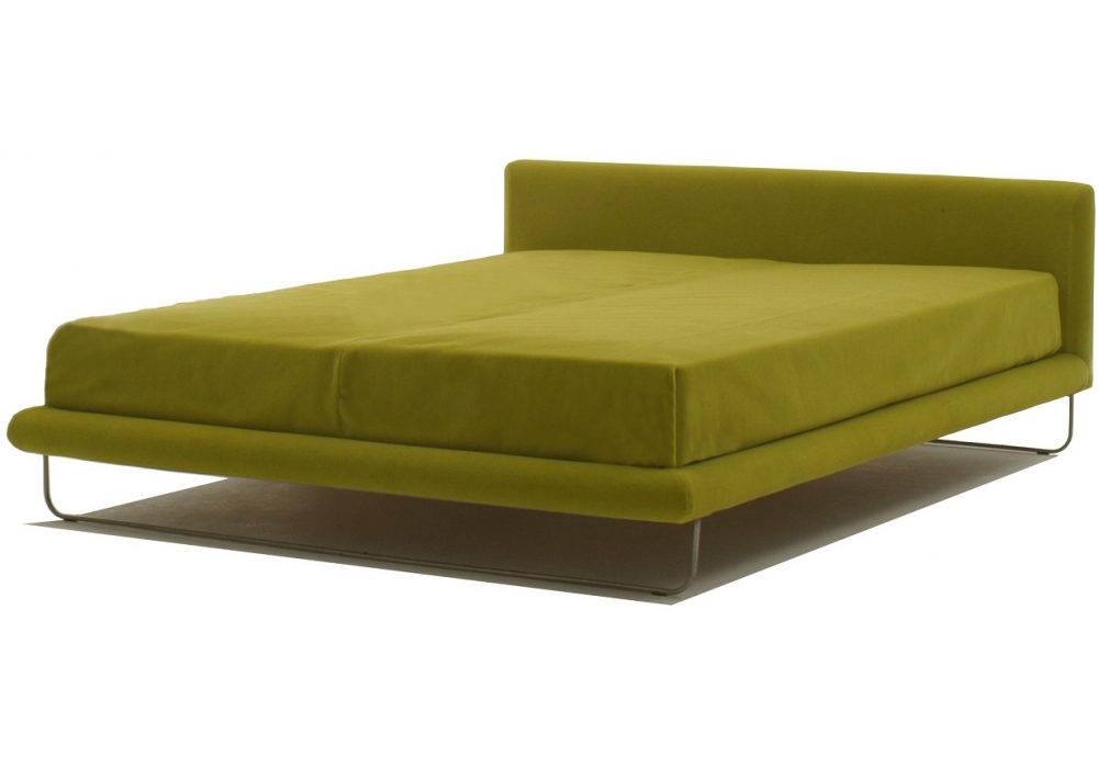 Avalon Bed designed by Eero Koivisto for Living Divani is an upholstered bed, with slatted base and satin stainless steel frame, featuring a sleek design made up of sinuous contours. Bed with headboard and bedstead structure in double-panelled poplar and pine padded in differentiated density polyurethane foam. Base in AISI 304 stainless steel tube, with matt satin-finish. Black lacquered metal frame for bed assembly and slat base support. Fabric or leather upholstery.
