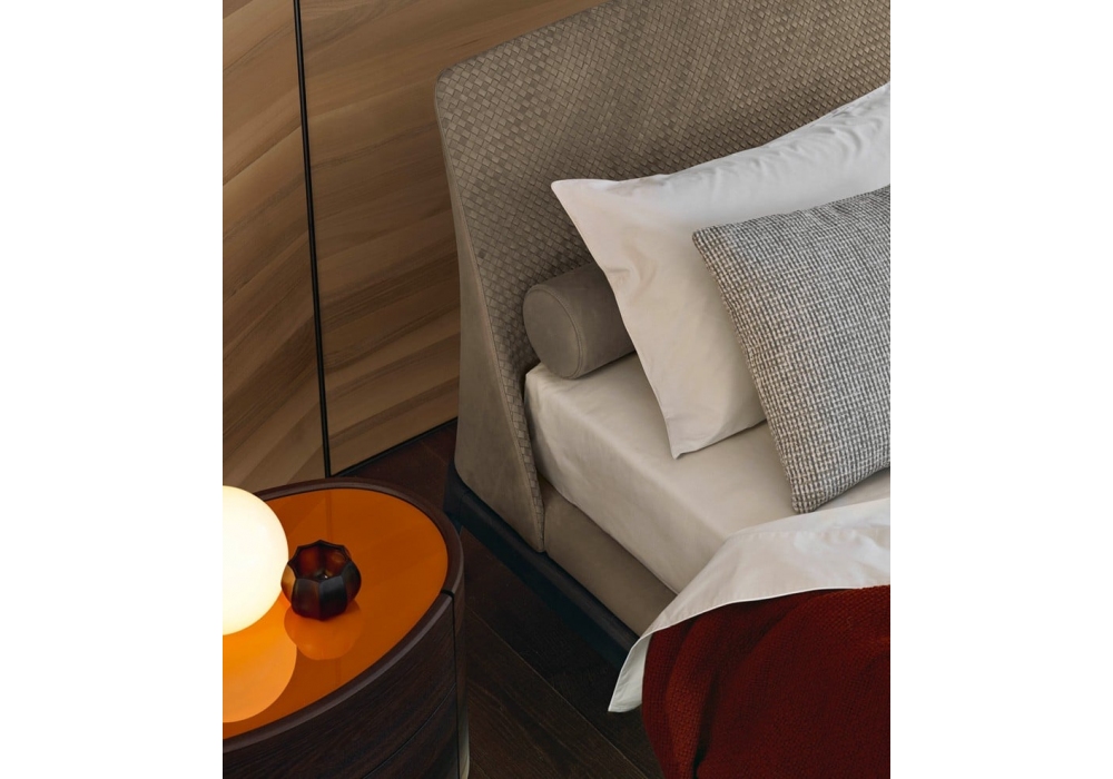 Kelly diseñada por Emmanuel Gallina para Poliform es una cama realizada con somier de madera maciza con relleno de poliuretano flexible monocapa. Tapicería en tela o piel.