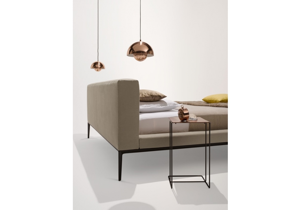 Jaan diseñada por Eoos para Walter Knoll es una hermosa cama con base de aluminio barnizada en polvo disponible en 2 acabados, cabecera y estructura tapizados con tejidos naturales o pieles. También disponible en diferentes dimensiones. Deslizadores sintéticos. Colchón no incluido.