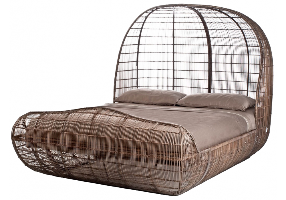 Voyage diseñada por Kenneth Cobonpue es una cama realizada con estructura de acero, abaca y nylon. Disponible en tres dimensiones.