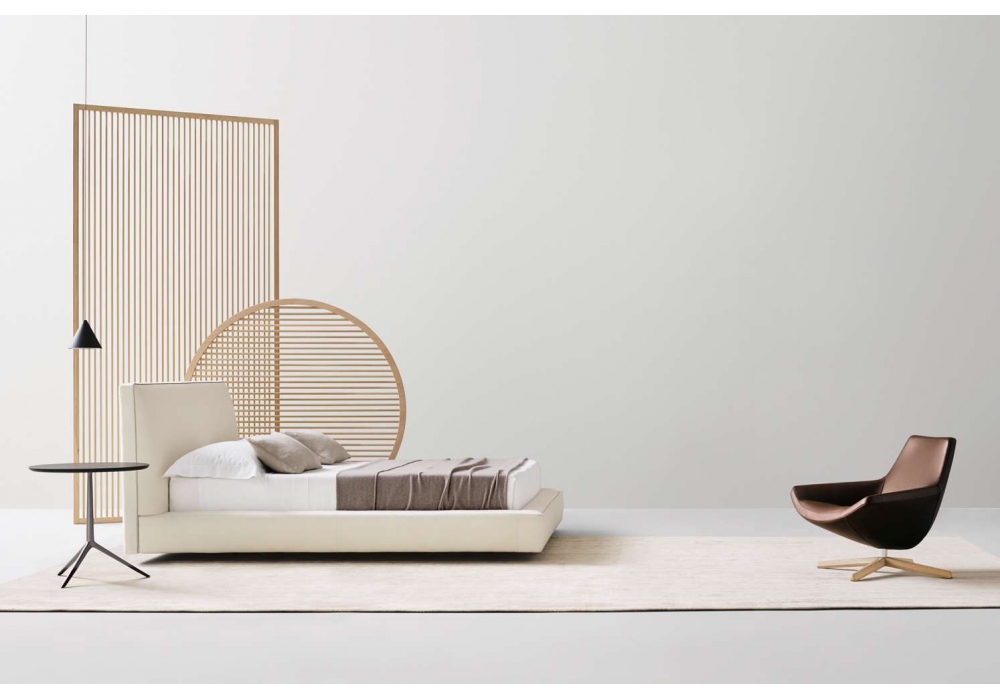 Richard diseñada por Antonio Citterio para B&B Italia es una hermosa cama, definida por una franja alta que se extiende a lo largo del perímetro de la cama y el detalle de costura sartorial con la inserción de un perfil de cuero ecológico cortado en bruto. La altura de las tiras laterales permite insertar cualquier tipo de soportes de colchón, desde malla metálica hasta listones de madera o un "bajo colchón" con muelles, o malla con manual. Disponible en diferentes dimensiones.