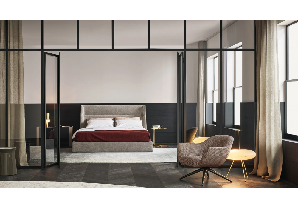 Chloe diseñada por Carlo Colombo para Poliform es una cama realizada con base acolchada en poliuretano flexible monocapa con pretapizado en fibra de poliéster. Tapicería en tejido o piel.