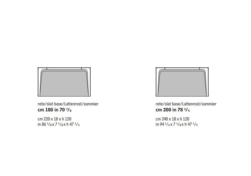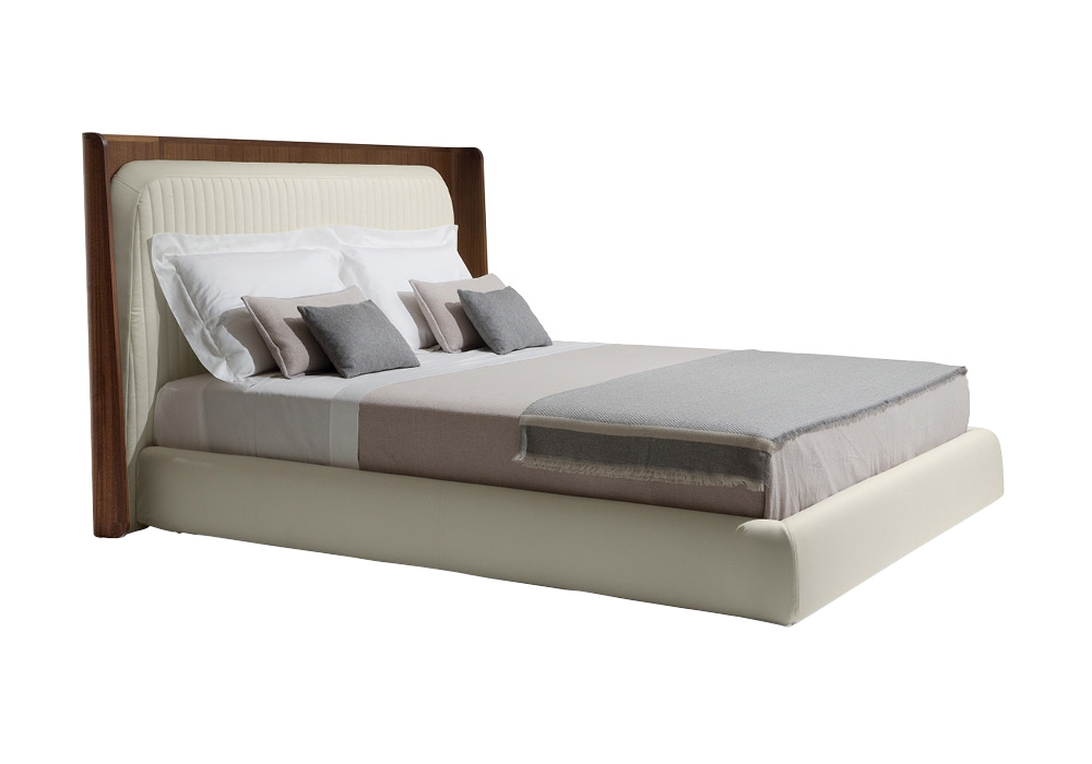 Hypnos diseñada por Umberto Asnago para Giorgetti es una cama con el marco de cabecera en madera curvada de álamo multicapa y madera de canaletto de nogal macizo. La cabecera se puede comprar por separado, ya que se puede fijar a la pared. El marco de la cama, en poliuretano multicapa y expandido cubierto con fibra, tiene soportes de la base de listones que se pueden regular en altura. La tapicería desmontable de la cabecera está acolchada en tejido o piel con puntadas.