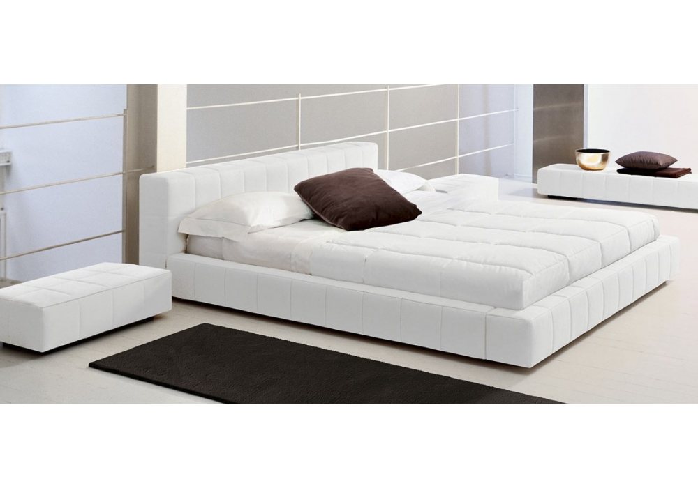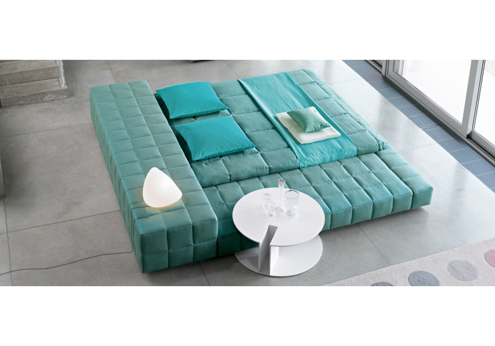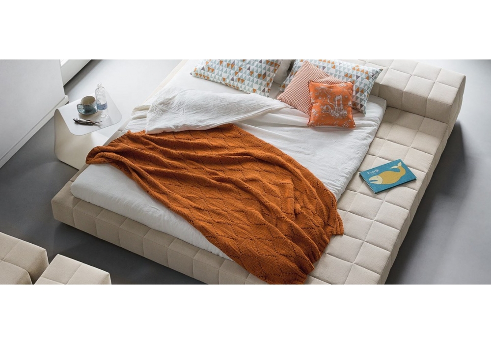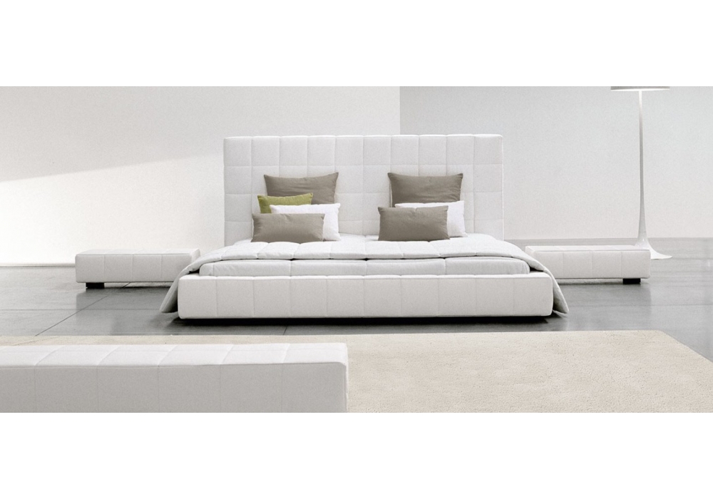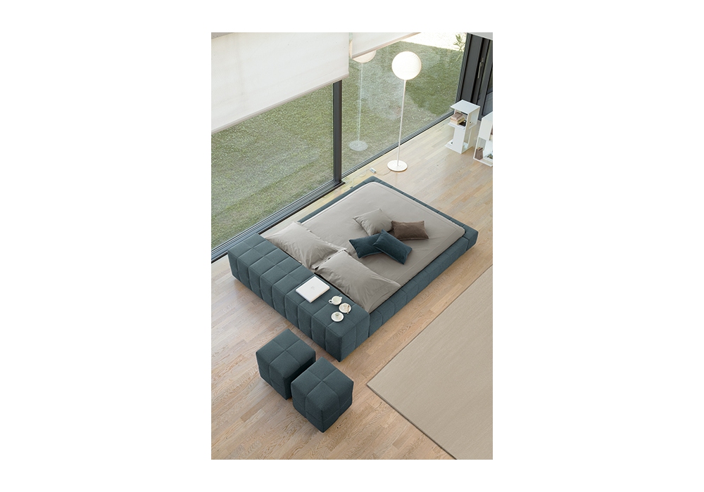 Squaring diseñada por Giuseppe Viganò para Bonaldo es una cama con estructura interna de madera con cantoneras metálicas. El acolchado es de espuma de poliuretano de varias densidades, con una capa de plumón mixto. La tapicería está disponible en diferentes tejidos y colores. Los pies son de madera pintada gris antracita mate, cuadrados o rectangulares. Disponible en varias versiones.