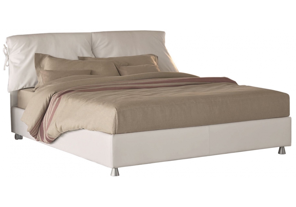 Nathalie diseñada por Vico Magistretti para Flou es una cama de matrimonio escenográfica con cabecera acolchada y como la base, forrada en tejido o piel completamente desenfundables gracias a los prácticos cierres de velcro. Los cubre-cojines presentes en la cabecera permiten guarder las almohadas al abrigo del polvo. Disponible con base rígida, base de muelles Leonardo, base contenedor, base fija h 25 cm o h 16 cm. Pies con acabado en color aluminio.