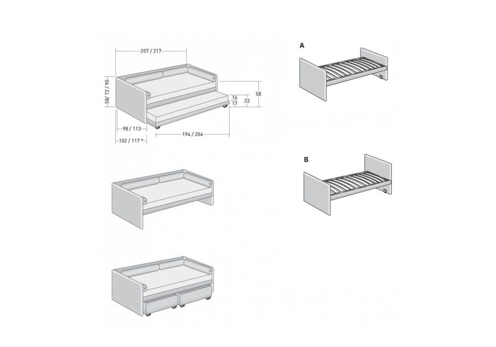 | Dimensions colchón | 85 x 190 cm; 85 x 200 cm. |