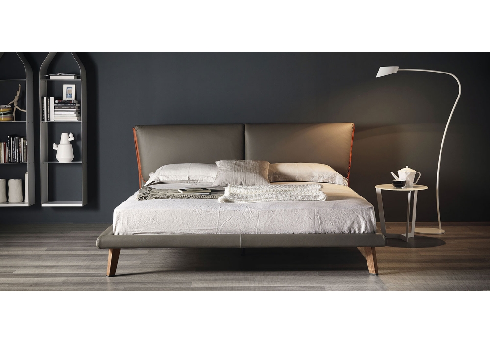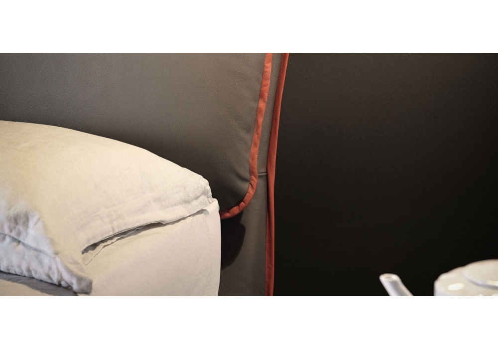 Adam diseñada por Gino Carollo para Cattelan Italia es una cama con patas en madera de nogal americano o roble, completamente revestida en tela, cuero ecológico o cuero. Cordoncillo de la cabecera en tapicería a juego, en piel roja 989. Somier incluido, disponible en diferentes dimensiones.