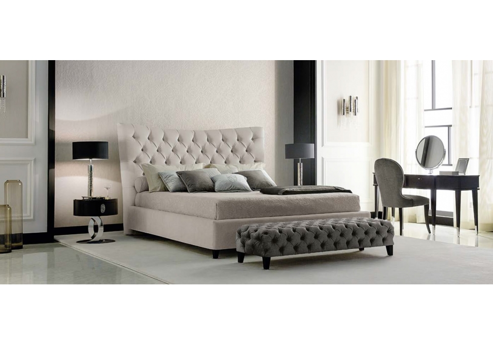 Berenice diseñada por Castello Lagravinese Studio para Opera Contemporary es una cama con pies realizados en madera y revestimiento disponible en tejido o piel. Su característica distintiva es el refinado trabajo capitonnè que se presenta en la cabecera.