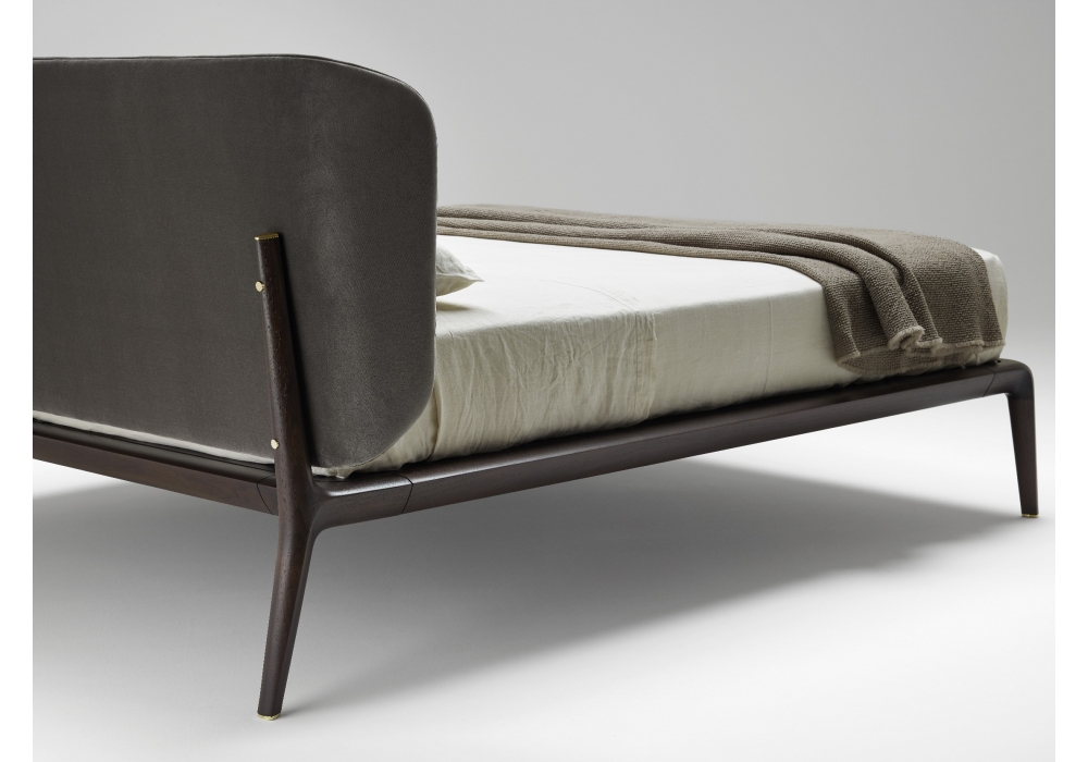 Sweet Dreams diseñada por DRAW para Ceccotti Collezioni es una cama en nogal americano macizo, base en madera contrachapada chapeada, cabecera tapizada en tejido o cuero. Detalles en latón. Colchón excluido.