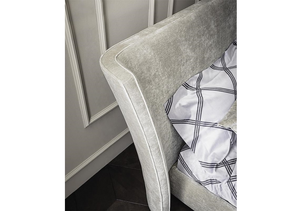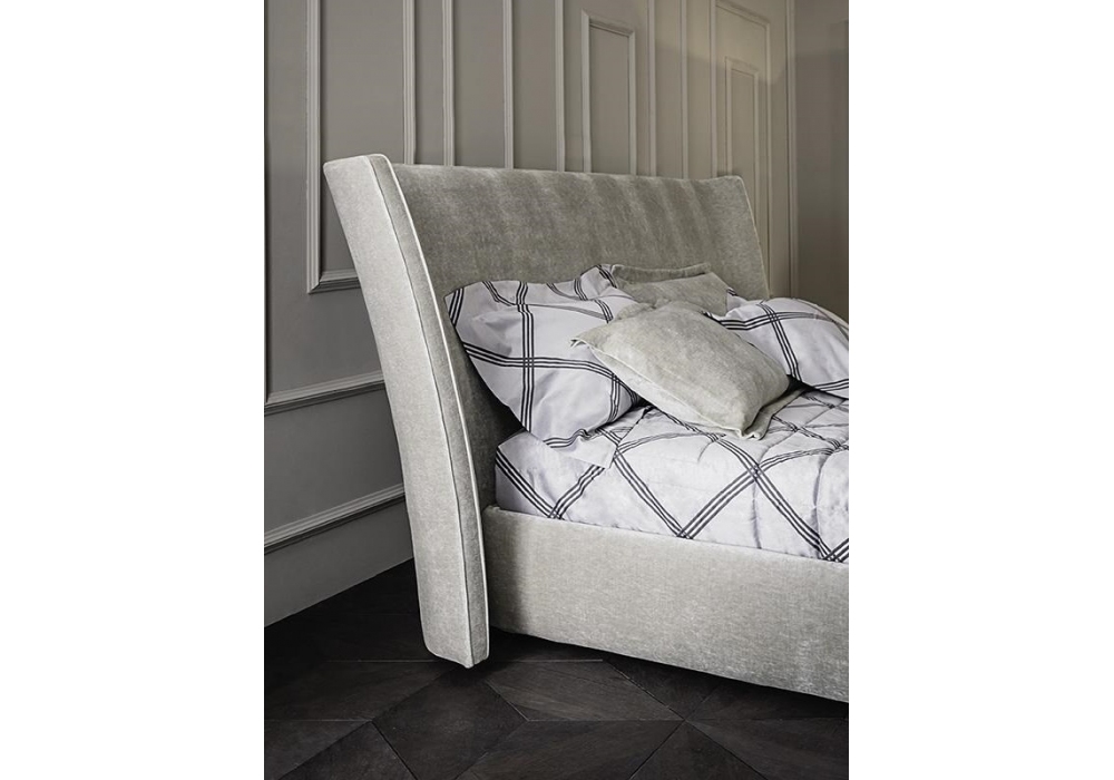 Vanity diseñada por Castello Lagravinese Studio para Casamilano es una cama con cabecera en contrachapado macizo de abeto y álamo. La base está formada por paneles de aglomerado con pies de ABS. Acolchado de espuma de poliuretano con funda fija de tejido o piel.