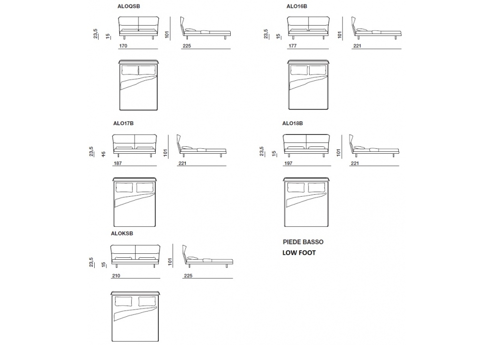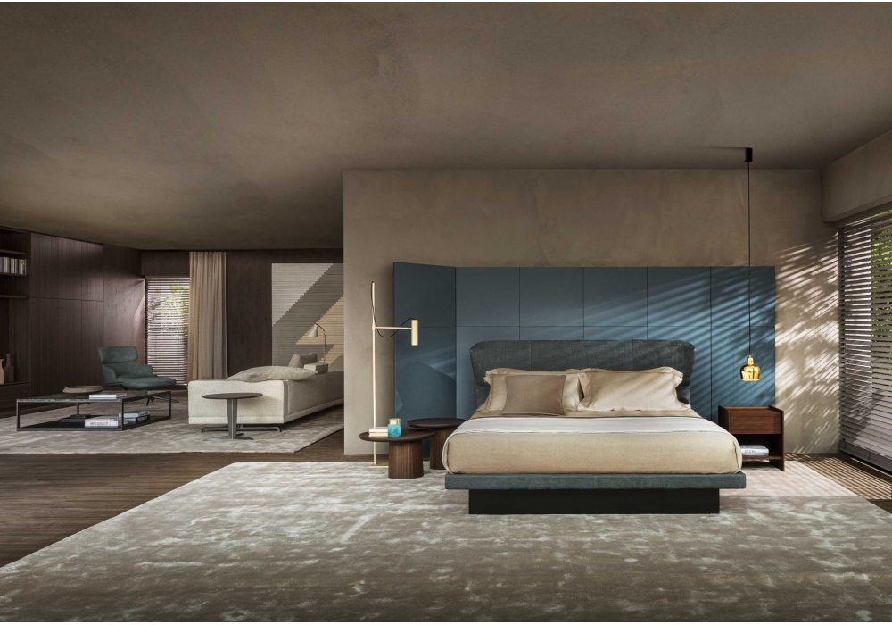 Azul diseñada por Nicola Gallizia para Molteni&C es una cama realizada con estructura de cama en versión fija con pies pintados de negro o versión contenedor con pies de acero cromado. Tapicería en tela, piel o cuero. Disponible en diferentes acabados y dimensiones.