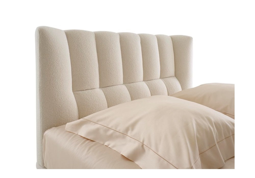 Evisa diseñada por Philippe Nigro para Ligne Roset es una cama con revestimiento en tejido o piel. Disponible en 2 medidas. La apuesta ganadora de esta cama se debe tanto al gran confort físico y visual como a la sensación de refinamiento del cabecero que no deja de recordar el estilo art deco.