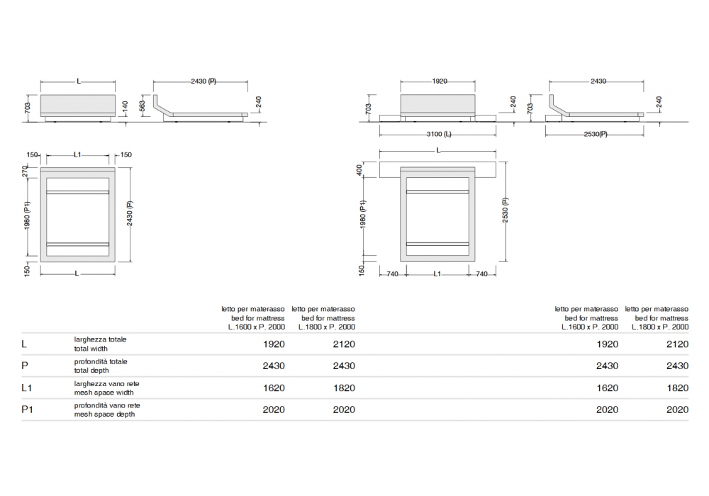 | Dimensiones | • 160 x 200 cm; • 180 x 200 cm; • 193 x 203 cm |