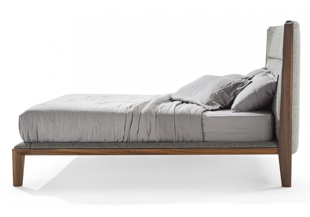 Nyan diseñada por Gabriele & Oscar Buratti para Porada es una cama con estructura íntegramente en nogal canaletta macizo, estructura de red en contrachapado de álamo, cabecero con estructura de soporte en contrachapado de álamo y acolchado en poliuretano perfilado. Disponible en diferentes dimensiones. Revestimiento en tela o piel.