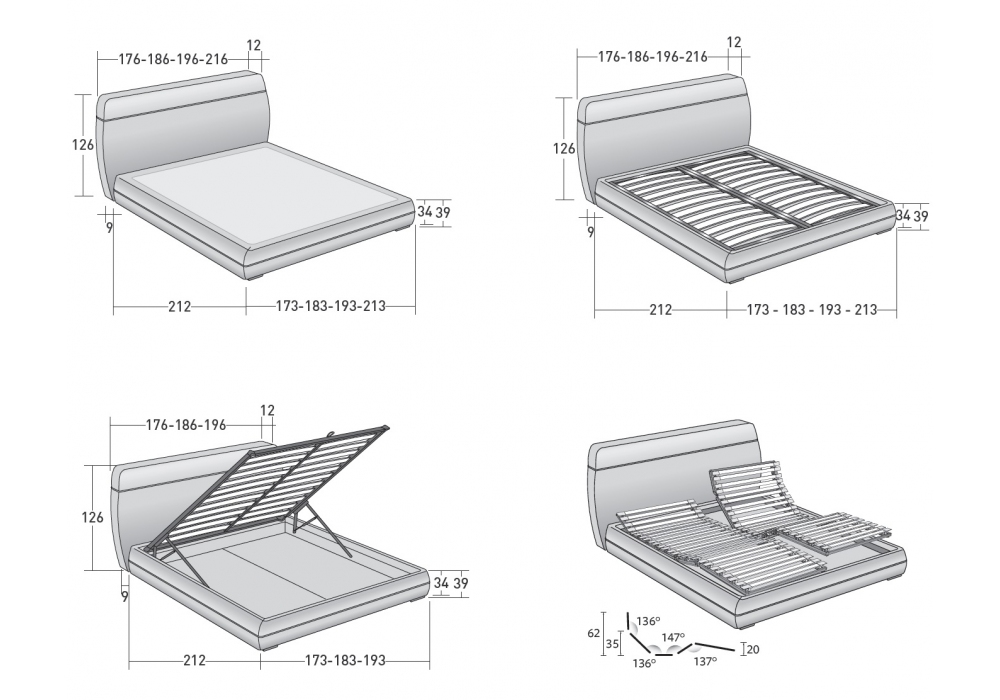 Mandarine diseñada por Emanuela Garbin & Mario Dell’Orto para Flou es una cama tapizada que se puede cubrir en piel o tejido. Esta cama se distingue por un vivo horizontal, a lo largo de todo perímetro de la base y en la cabecera. Disponible con base de muelles Leonardo, base contenedor, base fija o base con movimiento eléctrico.