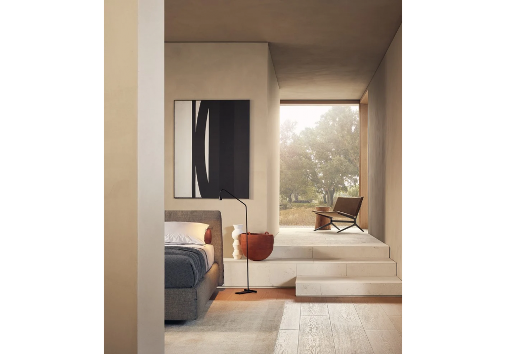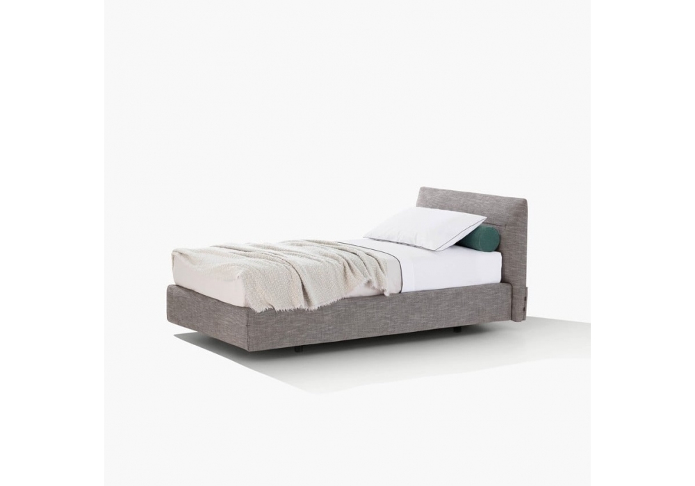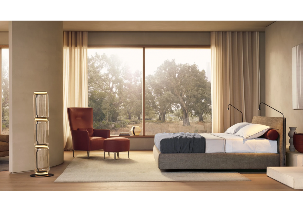 Jacqueline diseñada por Jean Marie Massaud para Poliform es una cama con somier y cabecero acolchado en poliuretano flexible monocapa y revestimiento en tejido o piel.