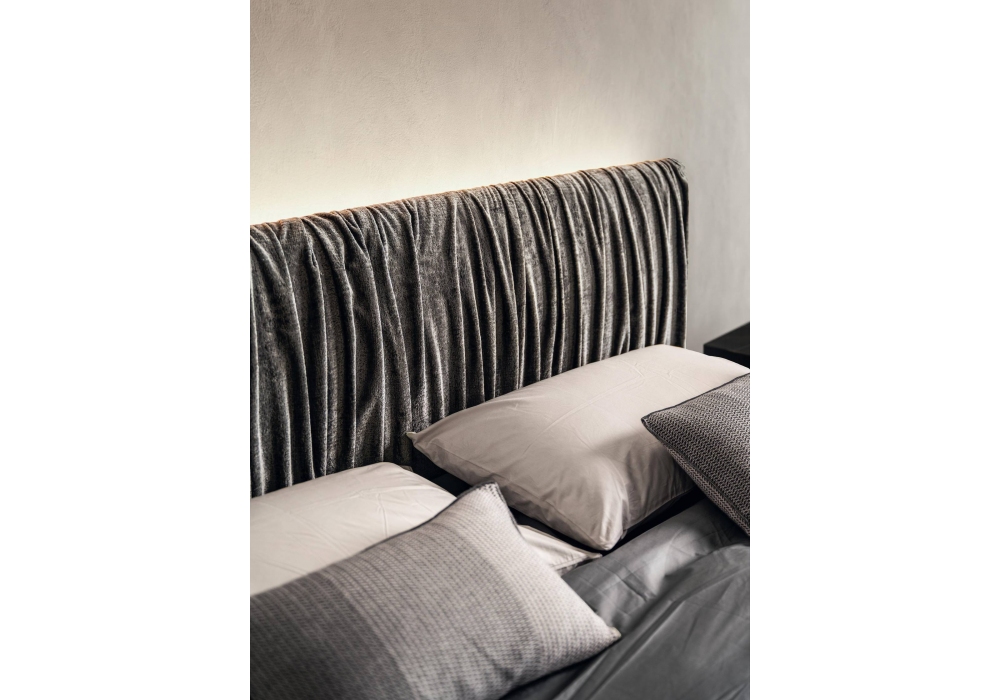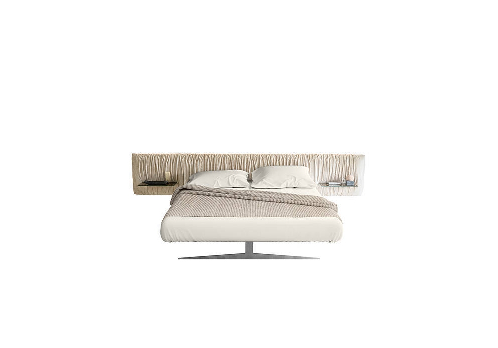 Steel Replis diseñada por Daniele Lago es una cama con base y cabecero autoportantes. Patas en acero pintado Peltre o Acero Titanio. Cabecero sin terminar en la parte posterior.