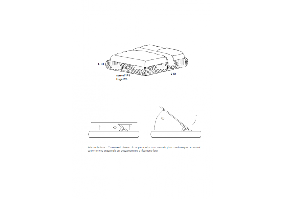 | Dimensiones | Normal : 176 x 213 x H 31 cm; Large : 196 x 213 x H 31 cm. |