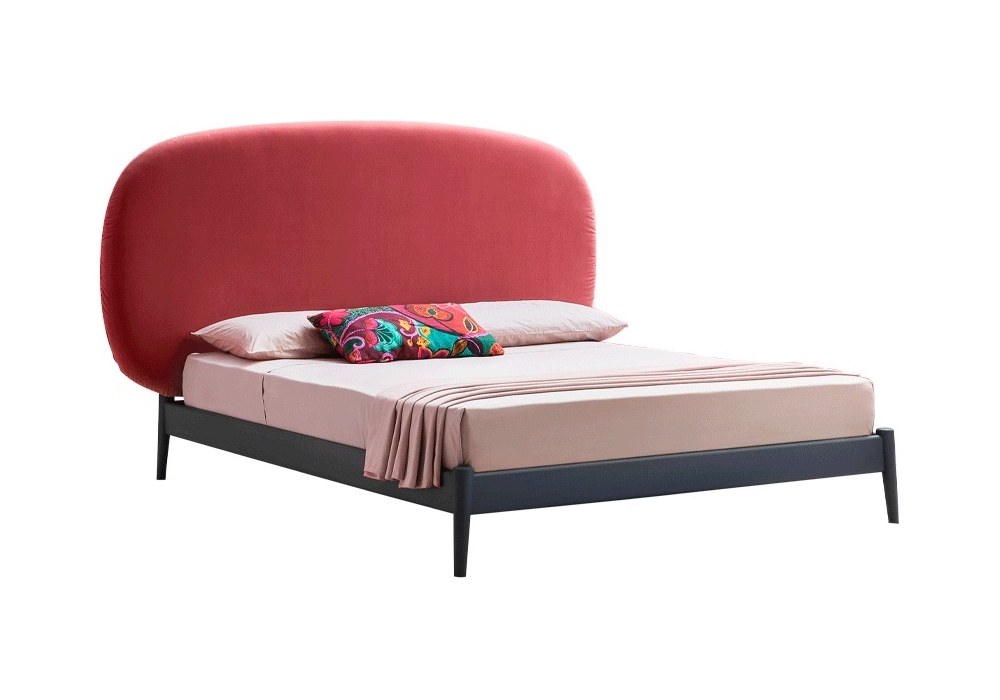 Shiko Magnum diseñada por E-ggs para Miniforms es una cama con estructura en fresno azul intenso o anillina, respaldo ligeramente curvado con tapizado en tejido o ecopiel. Disponible en diferentes acabados y medidas.
