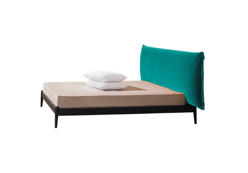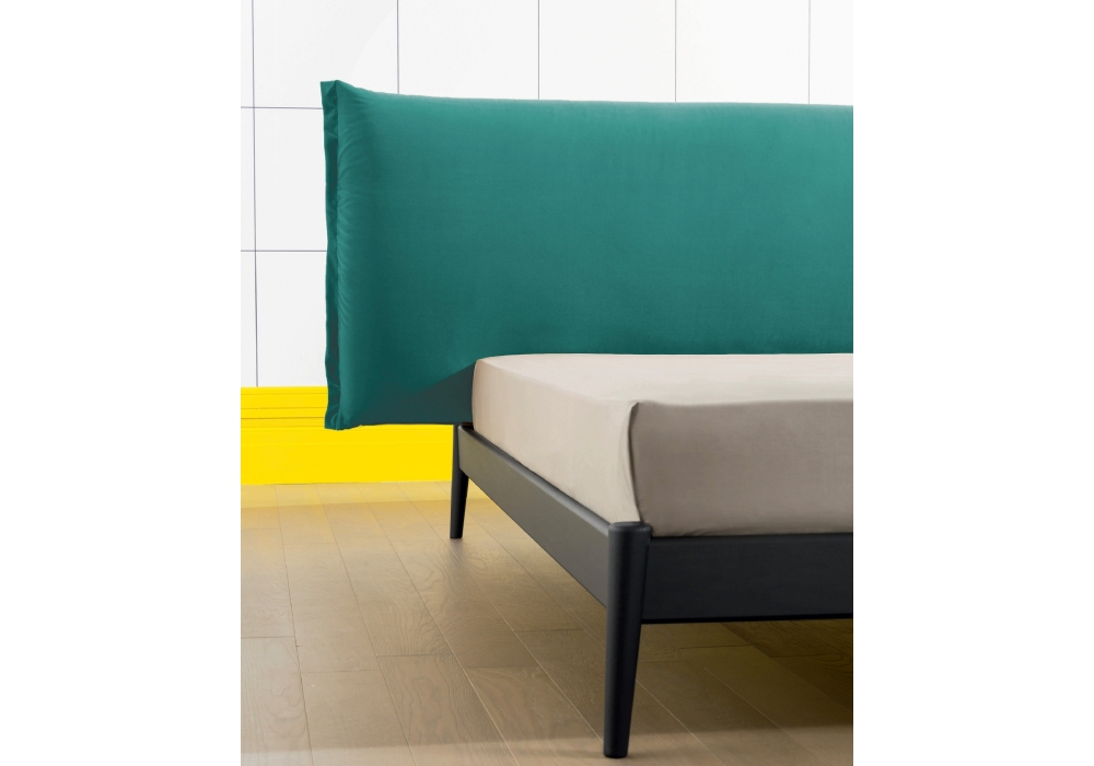 Shiko Wonder diseñada por E-ggs para Miniforms es una cama con estructura en fresno azul profundo o anillina, respaldo rectangular tapizado en tela o ecopiel. Disponible en diferentes acabados y medidas.