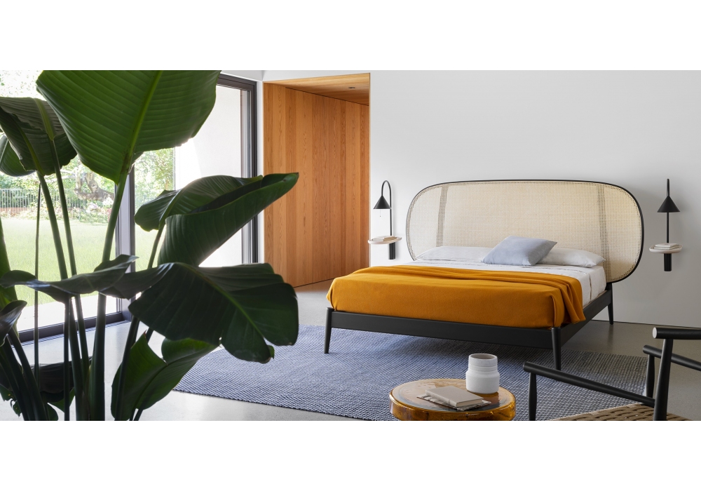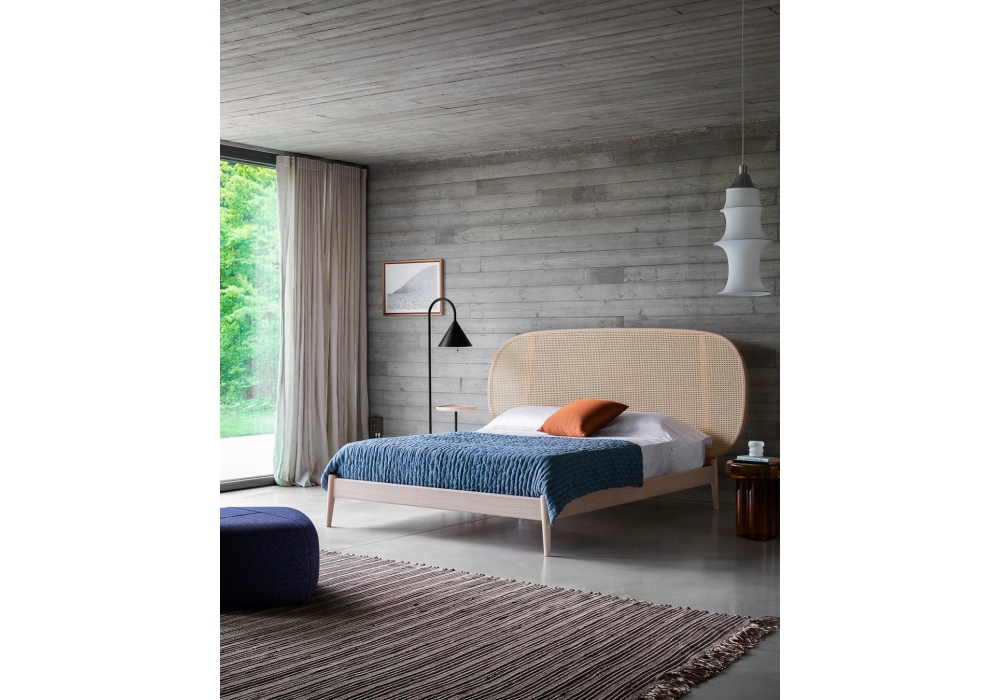 Shiko Wien diseñada por E-ggs para Miniforms es una cama con estructura de fresno, respaldo ligeramente curvado en acabado Paja de Viena. Disponible en diferentes acabados y medidas.
