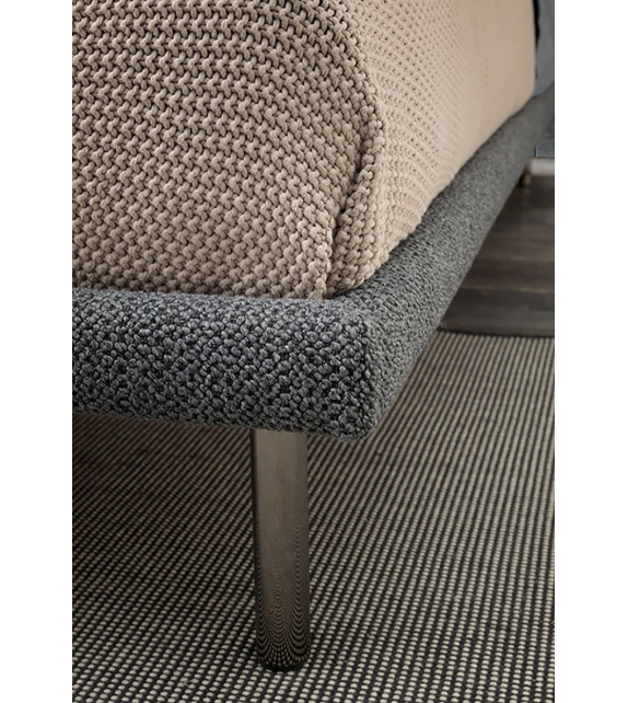 Essential diseñada y producida por Valentini es una cama con estructura de madera contrachapada en la versión con caja de almacenamiento o en hierro pintado negro y revestido en poliuretano, base de metal con listones anatómicos de madera. Disponible en varios tamaños y en diferentes acabados, totalmente desenfundable en tejido y piel.