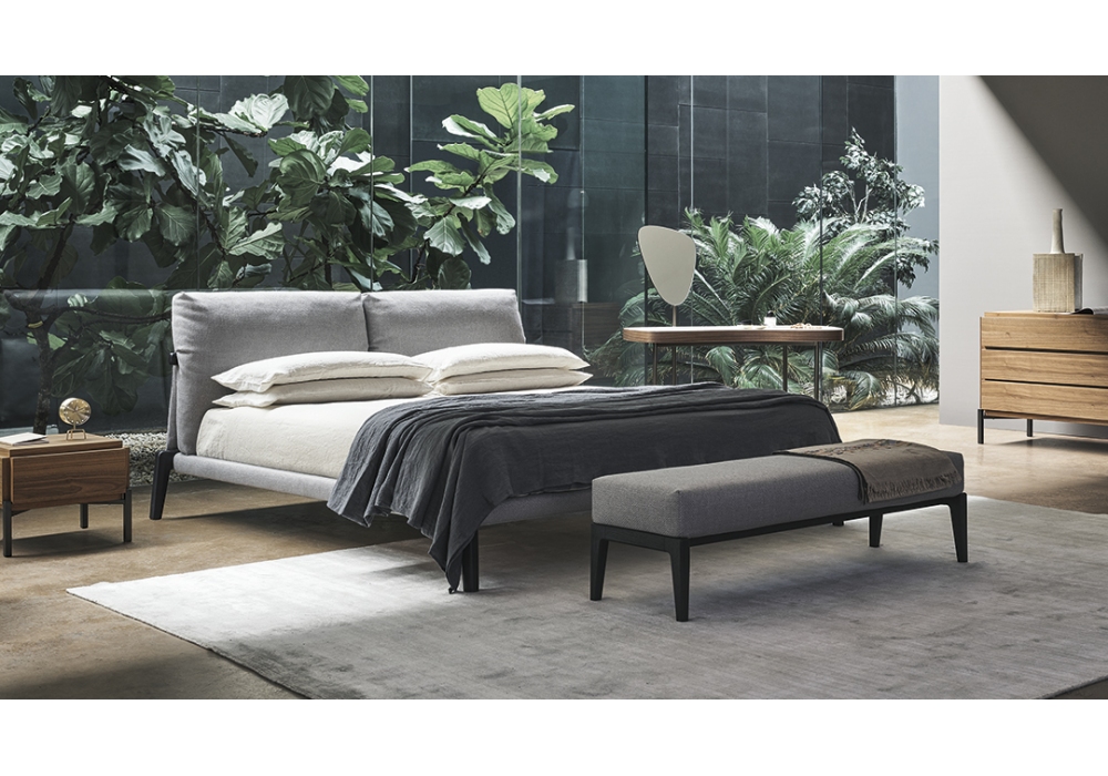 Kriss diseñada por Maurizio & Silvia Varsi para Bonaldo es una cama con estructura interna en madera, cabecera acolchada en espuma de poliuretano de varias densidades y estructura de cama en madera maciza con pies perfilados visibles. La funda es desenfundable y está disponible en diferentes tejidos y colores. La cama está hecha en varios tamaños.