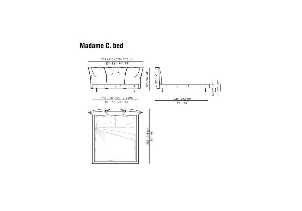 Madame C diseñada por Giuseppe Viganò para Bonaldo es una cama con funda desenfundable en tejido, en diferentes acabados. La base es de metal pintado mate, en varios colores. Disponible en varios tamaños.