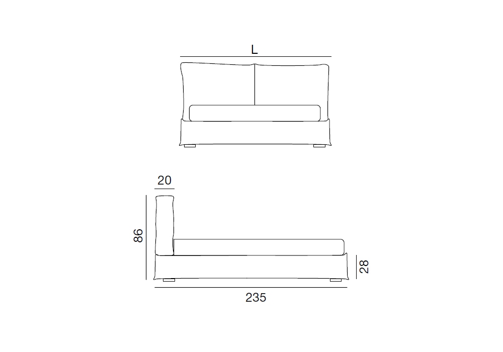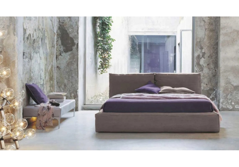 Academy Piuma diseñada por R&D Twils es una cama tapizada con somier H. 16 cm o 28 cm. Está disponible con una amplia gama de pies y también con almacenaje.