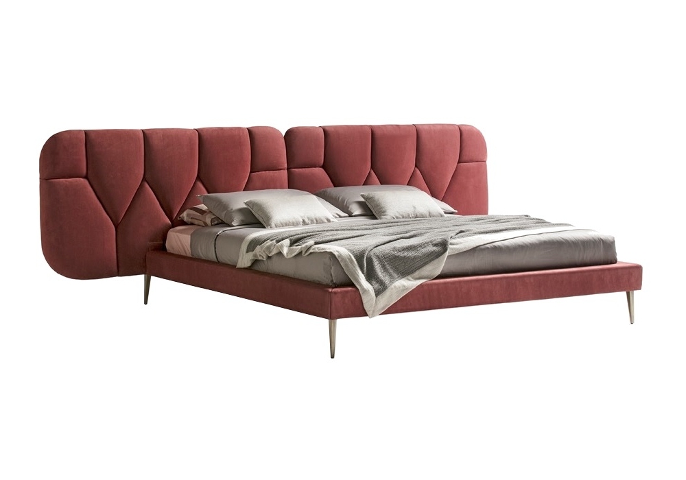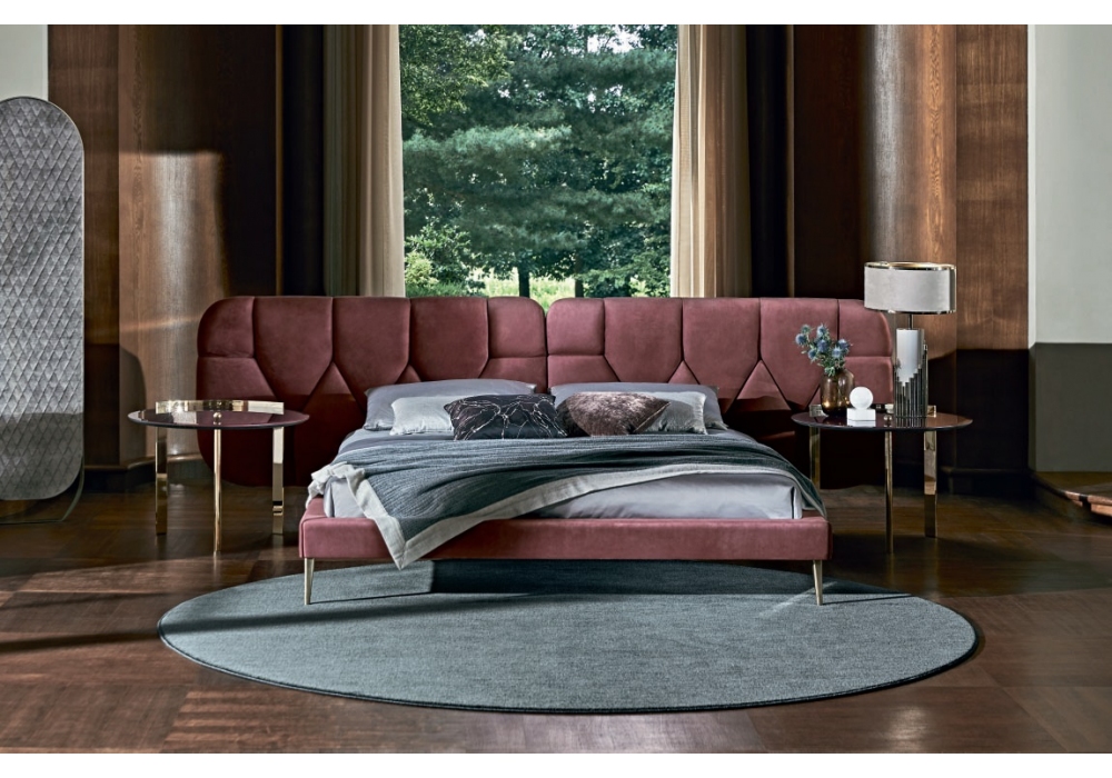 Dorothy diseñada por Castello Lagravinese Studio para Opera Contemporary es una cama con pies de metal y revestimiento disponible en tejido o piel.