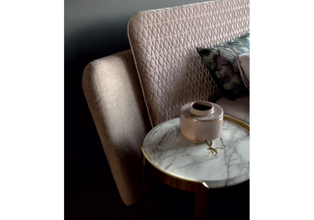 Sheila diseñada por Castello Lagravinese Studio para Opera Contemporary es una cama realizada con base de madera de haya y revestimiento en tela o piel. Estructura de cama con revestimiento desenfundable solo si es de tela.